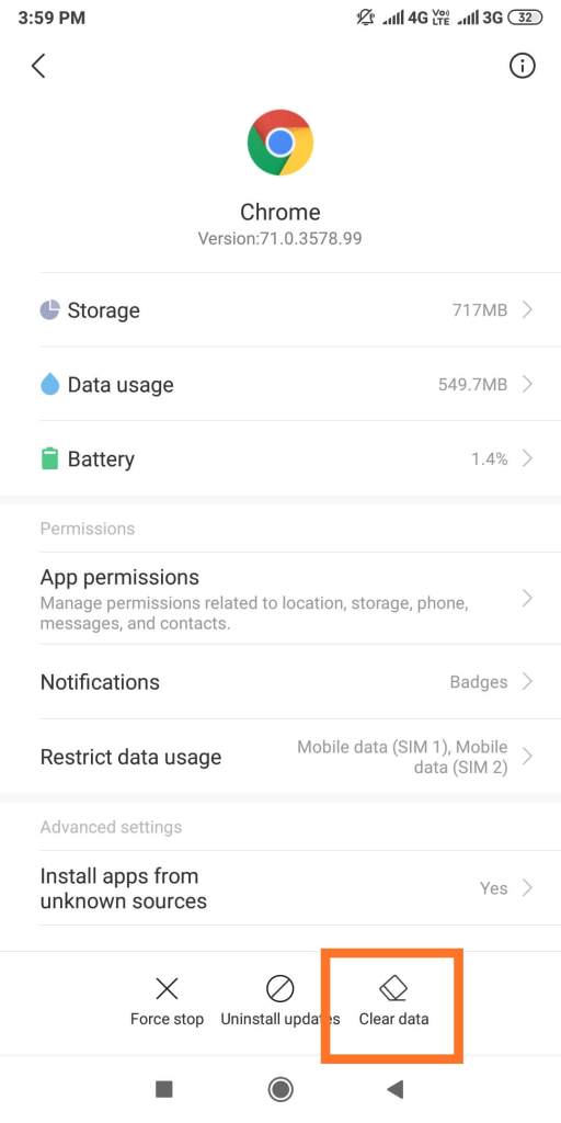 Step 4: Now click on Clear data option. (Note: In some android smartphone this feature available after click on “Storage” option).