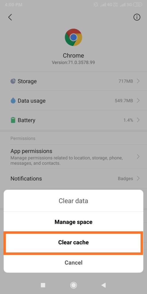 Step 5: Now it will ask you to delete data of the app or Cache of the app. So click on Clear Cache. If you want to clear data of the app, Simply just click on Clear Data.